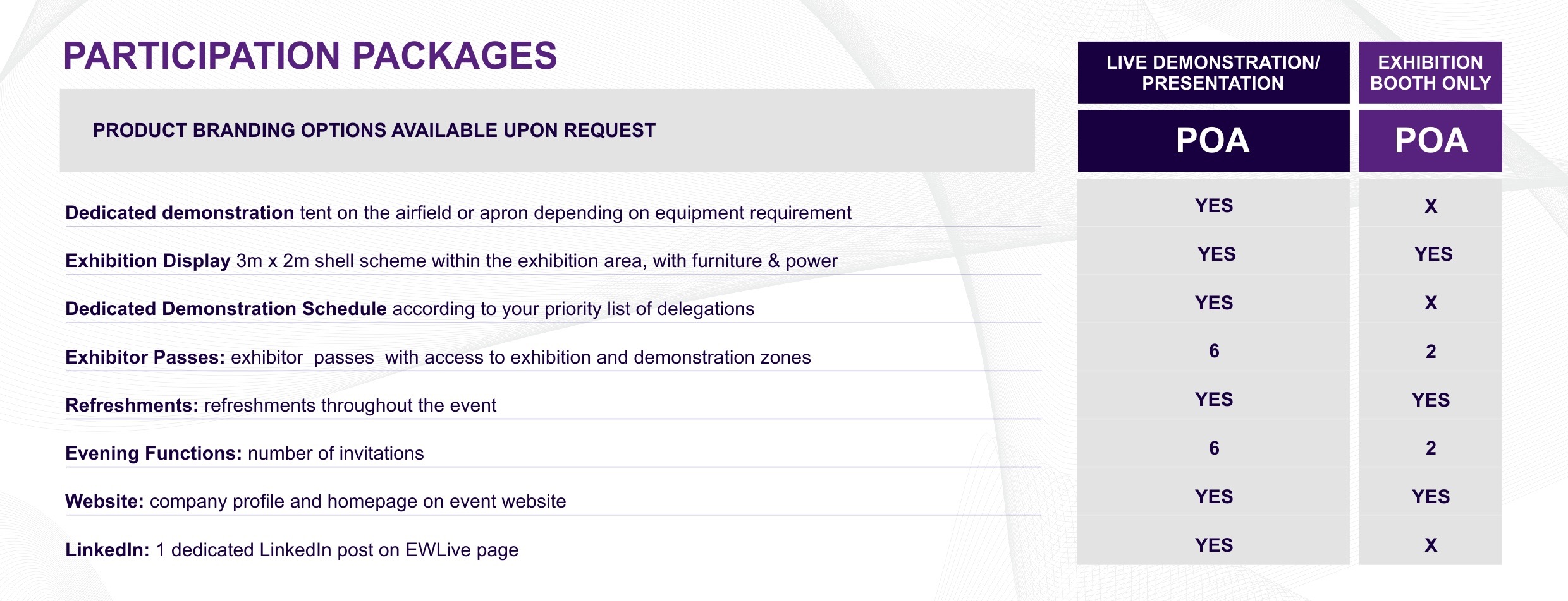 Please contact Carl Piercy for further information on participation packages.